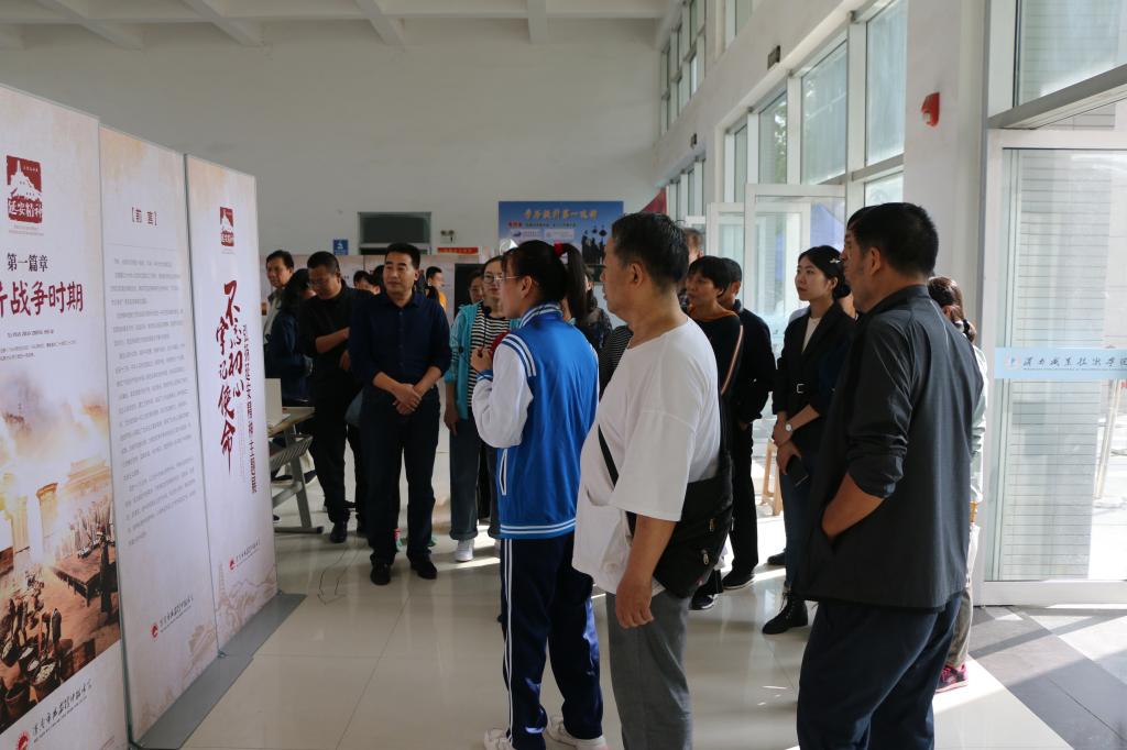 9月23日下午3:30,best365官方网站登录入口全体党员在党总支书记张儒同志的带领下,到公司公共教学楼一楼大厅参观了延安精神进校园主题图片展,并于参观结束后在best365官方网站登录入口会议室举行了主题研讨活动。
