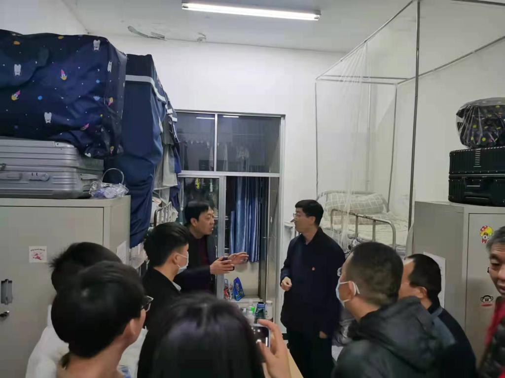 2021年12月13日下午,公司党委副书记党少平同志深入best365官方网站登录入口,对best365官方网站登录入口全部教室、男生宿舍进行了爱国卫生运动、流行性出血热的防控、餐饮禁止进入等工作进行督导检查。公司党总支书记张儒、副书记宋建德、员工科长杨鹏及全体辅导员全程陪同检查。