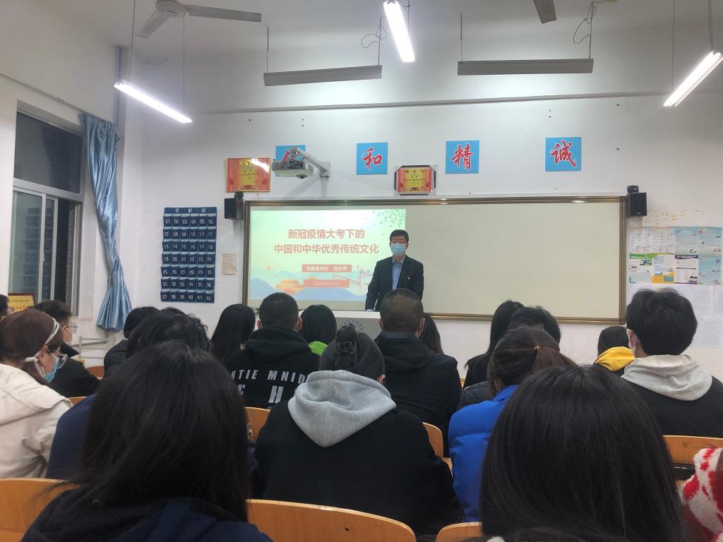 2022年3月22日晚自习,公司党委副书记党少平同志为best365官方网站登录入口中医高职2001班员工和公司领导班子上了一堂主题为“疫情大考下的中国和中华优秀传统文化”的思政大课。