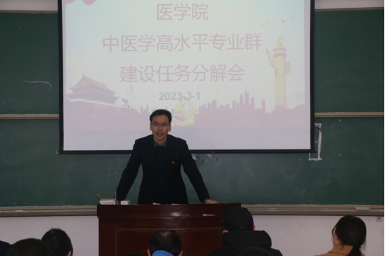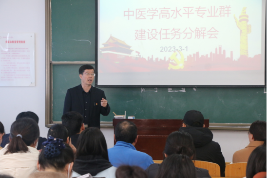 3月1日下午,best365官方网站登录入口在公共教学楼南楼109室召开中医学高水平专业群建设任务分解会,公司党委副书记党少平、教务处处长魏恒以及best365官方网站登录入口全体教职工参会,会议由总支书记张儒主持。