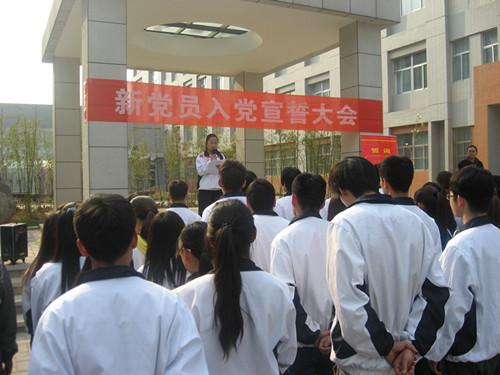周梦华代表公司党组织致辞后,公司党总支副书记杨瑞侠宣布了参加宣誓的11名预备党员名单,他们在辅导员苏向丽老师的带领下庄严宣誓。预备党员代表卢艳芳同学发言中无比激动,她郑重承诺:在今后的成长过程中,要加强党性锻炼,不断提升积极上进和自我牺牲等优秀品质,以优秀党员为榜样,树立全心全意为人民服务的宗旨。积极分子代表张宁同学也表示出对加入党组织的向往之情,立志要踏实学习,带头遵守校纪校规,为创建优良学风、校风贡献力量。