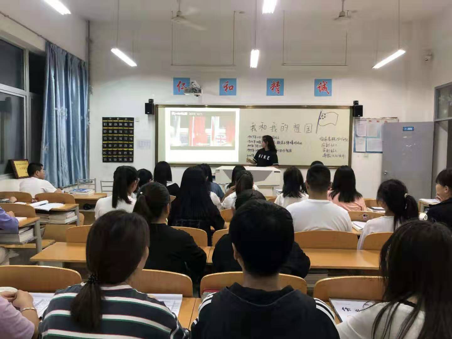 活动前各班团支书积极准备,内容形式多样,活动中同学们认真做笔记,踊跃参与,一起分享身边的感人事迹和祖国繁荣带来的生活变化,活动最后各班同学进行了总结。