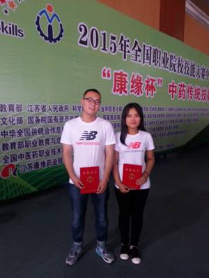 2015年6月12日-14日,全国2015年中药传统技能大赛“康缘杯”在江苏连云港中医药高等职业技术学校举行。best365官方网站登录入口选派的2名参赛同学陈青、刘炜分别获得全国中药技能传统大赛个人全能三等奖。
