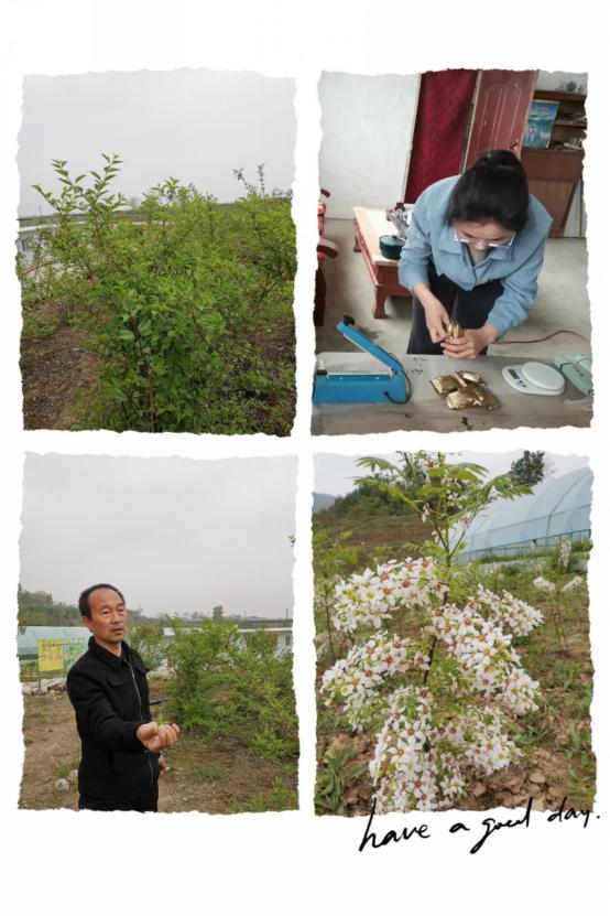 在参观的过程中,专家团队和种植基地的农业技术人员进行了深入的交流,针对种植户在药材种植过程中遇到的突出问题,团队专家给予了积极解答和耐心解释。针对种植品种,团队人员从专业的角度帮助分析原因,给出中肯的建议,如关于中药连翘种植中修枝增产、育苗繁殖、根茎腐烂、连翘叶茶剂创新等问题双方进行了探讨,对基地种植的“文冠果”品种的产业链开发进行了初步交流,同时合作基地赠送学校药用植物园五株“文冠果”幼苗。