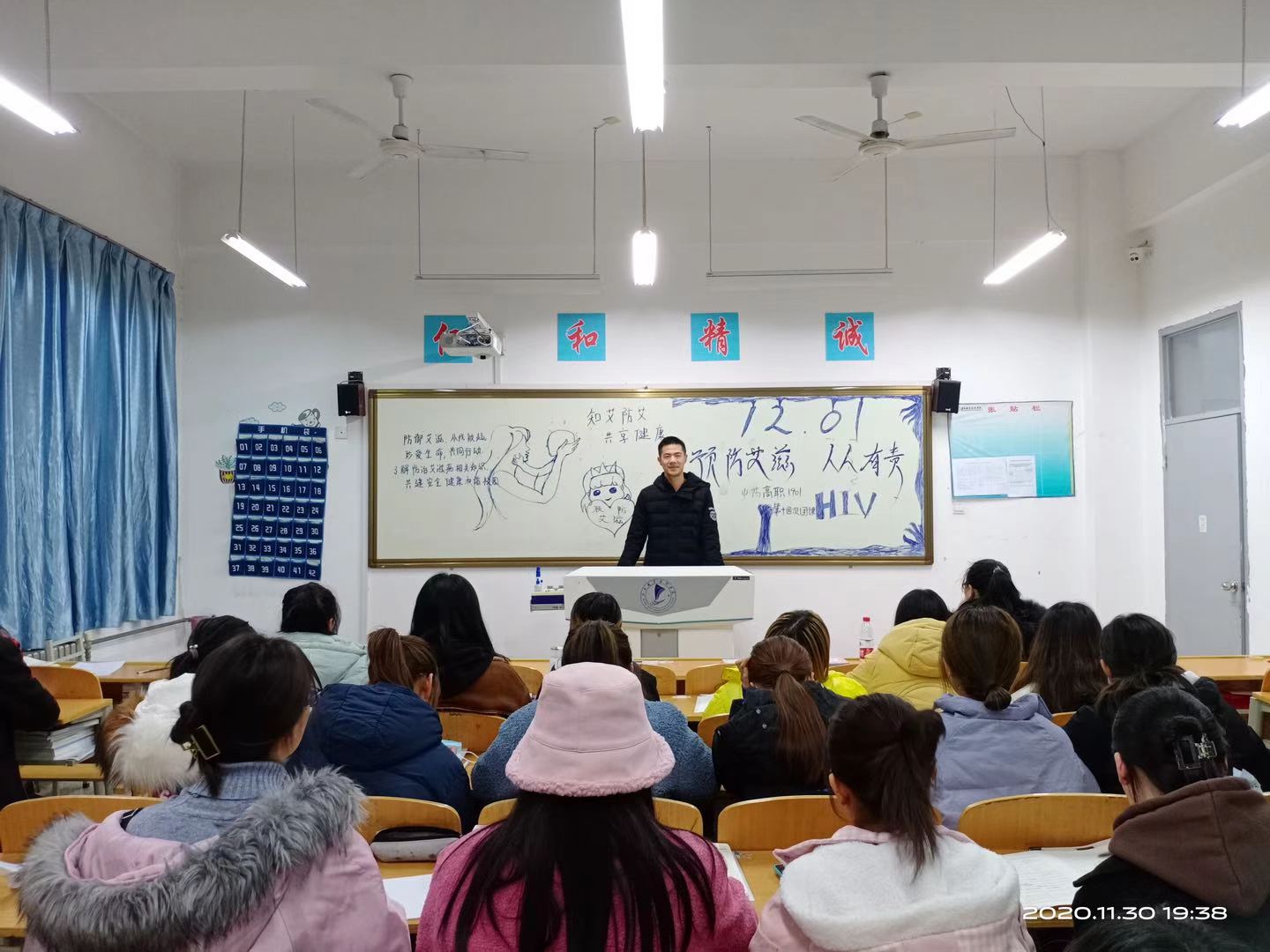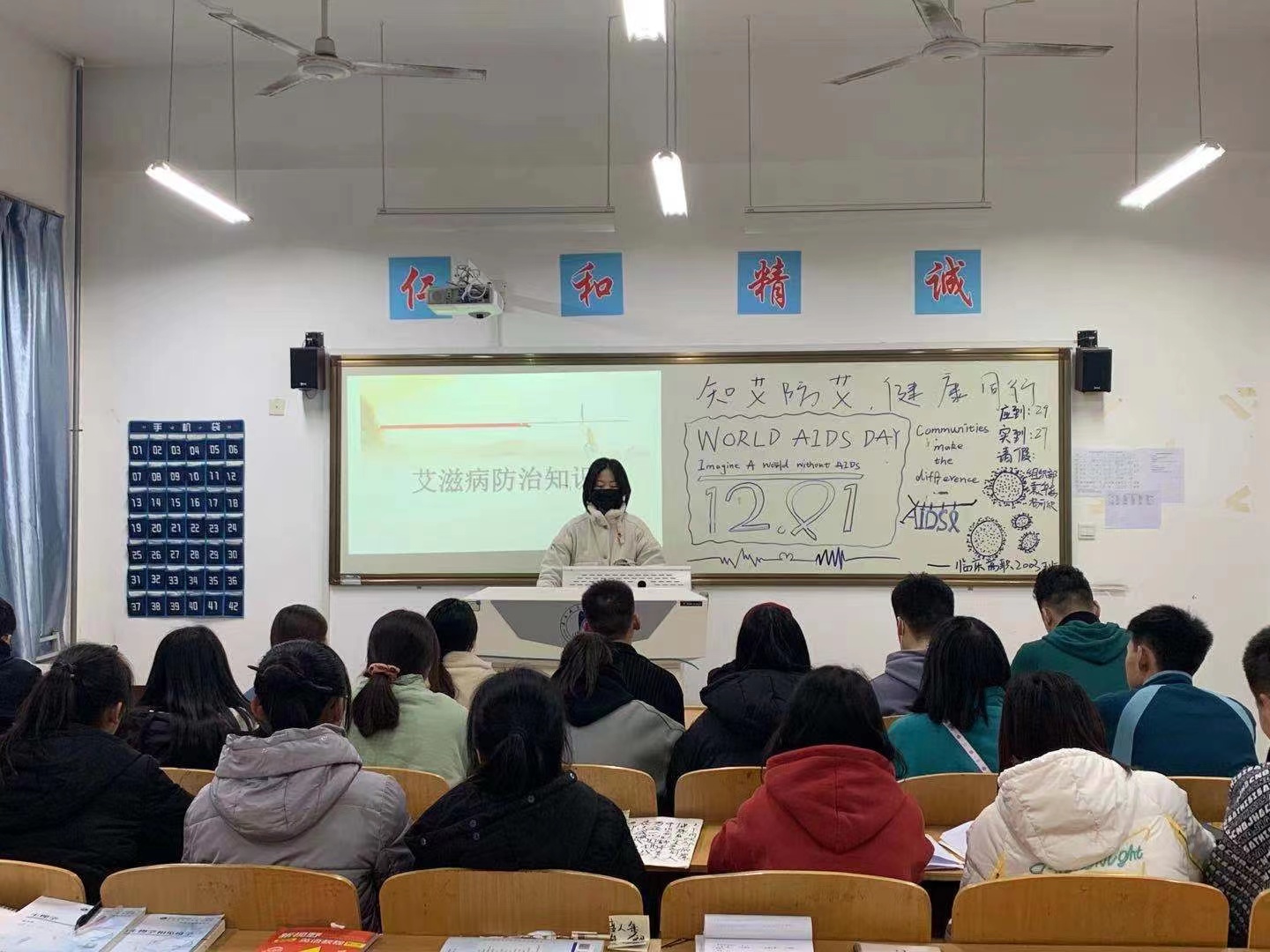 团课以图片、板报、视频等多种形式展开,各班团支书就什么是艾滋病、艾滋病传播途径以及易感染艾滋病的行为等方面进行了介绍,借助鲜活的事例对如何预防艾滋病等问题进行了详实生动的讲解,特别是对艾滋病感染者典型案例的分析,叫响了“控制艾滋病蔓延从我做起”的警示口号。团课强调,在日常生活中,同学们应该自觉养成健康生活观念和良好的卫生习惯,提高自我防范能力,做到“自爱、知艾、防艾”,深刻了解艾滋病的严重危害。
