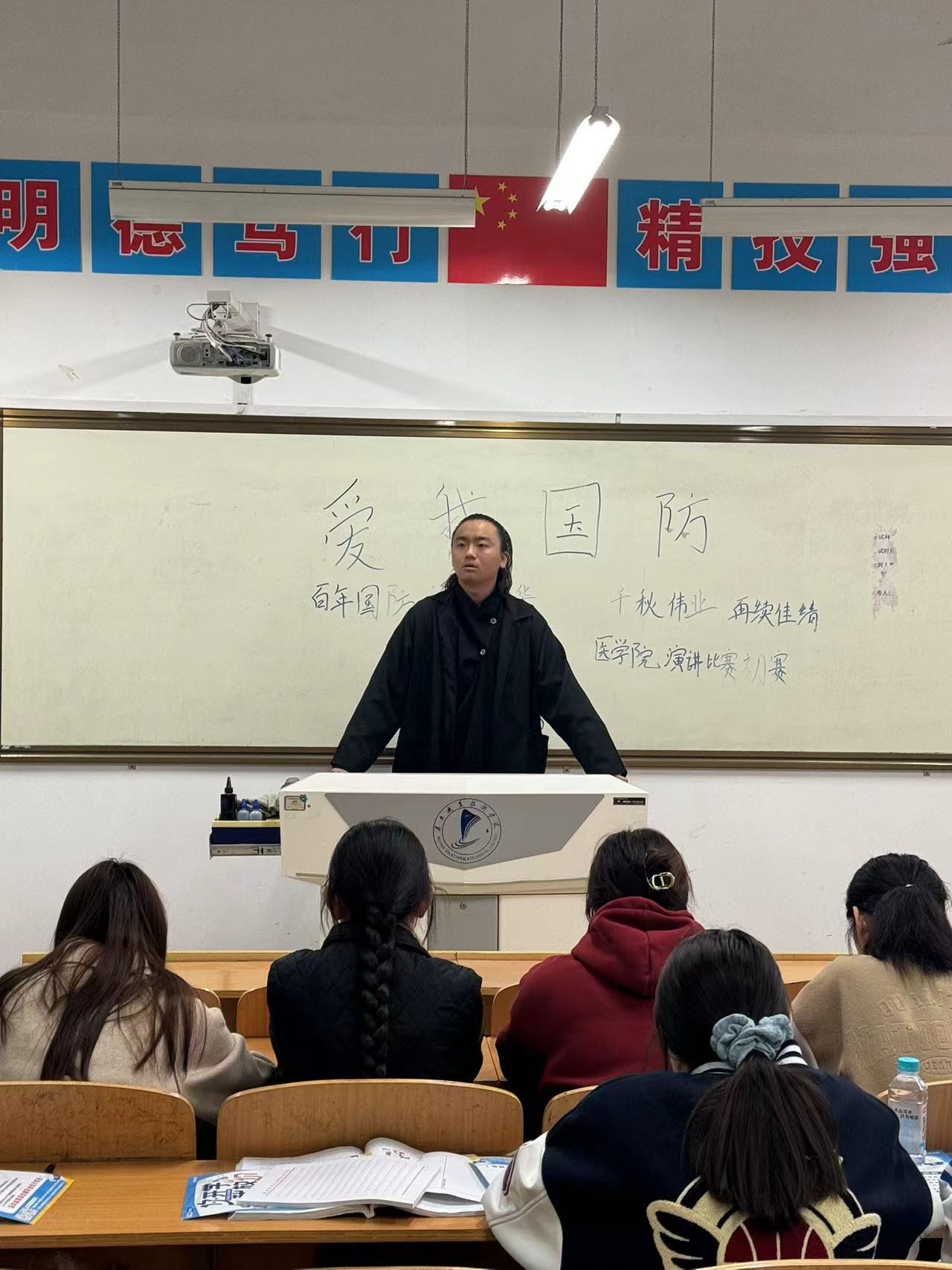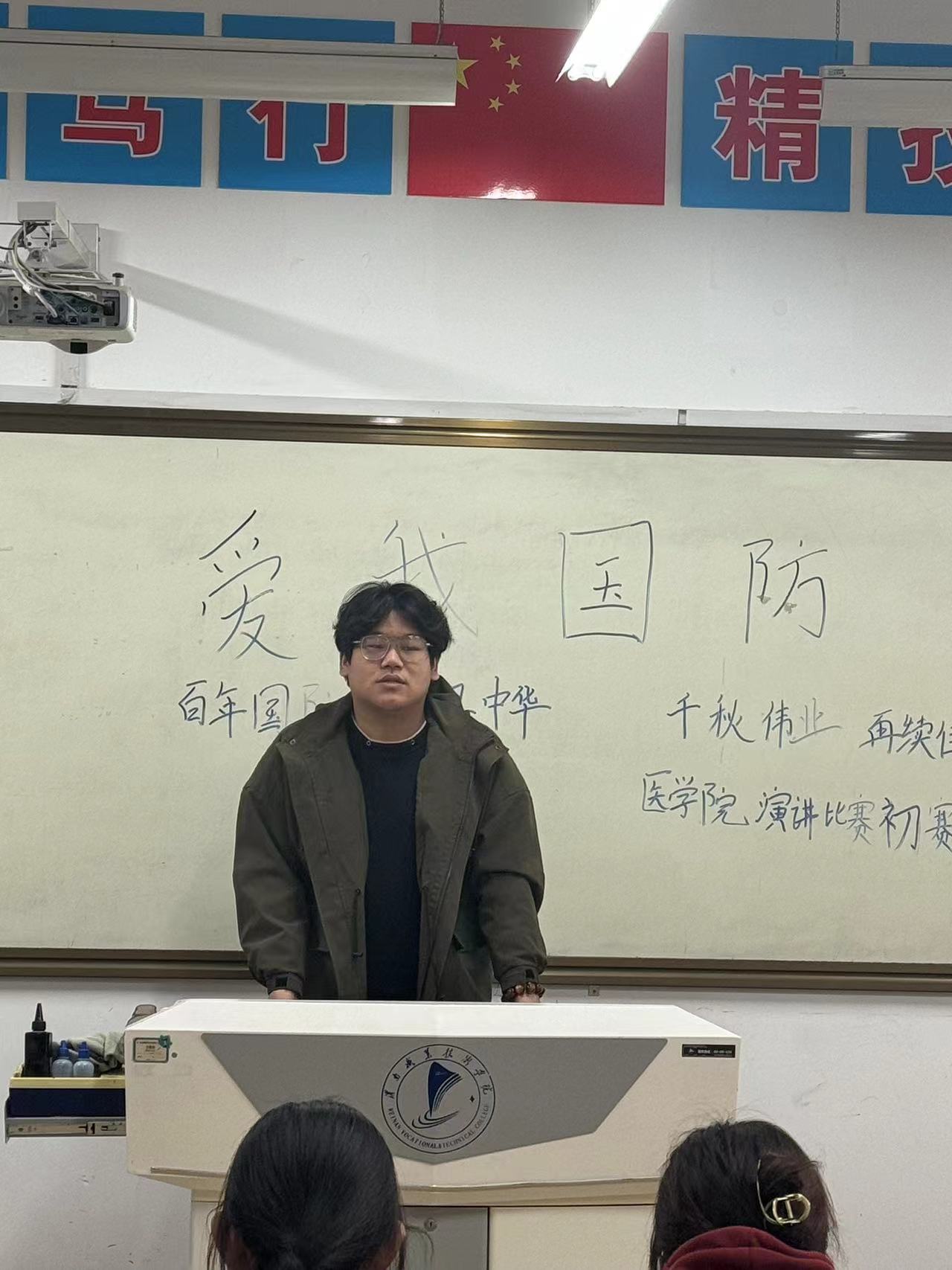 为进一步加强校园国防教育,增强员工国防观念,提高公司员工的国防意识和爱国精神,2024年3月27日下午,best365官方网站登录入口在教学楼医南212教室开展了“我爱国防”演讲比赛。本次活动通过前期层层筛选,有六位选手入围,选手依次上台进行5分钟演讲,其中中药2202班的王如山、汪晨鑫同学表现尤为突出。