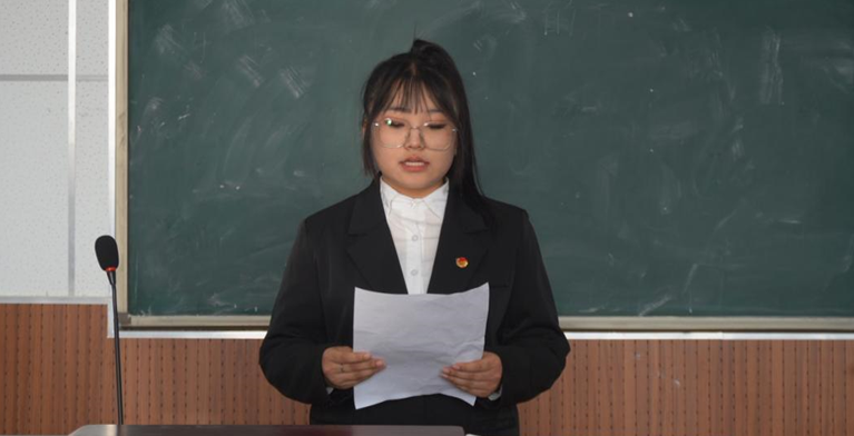 随后,新一届团总支副书记马倩蓉同学作任职演讲,她强调了团总支工作的光荣性和严肃性,号召新一届成员要牢固树立全心全意为同学服务的根本宗旨。让五四的火炬永远在我们心中燃烧,让壮丽的事业永远激励着我们奋勇向前。让中国共青团的先进思想在这里薪火相传。
