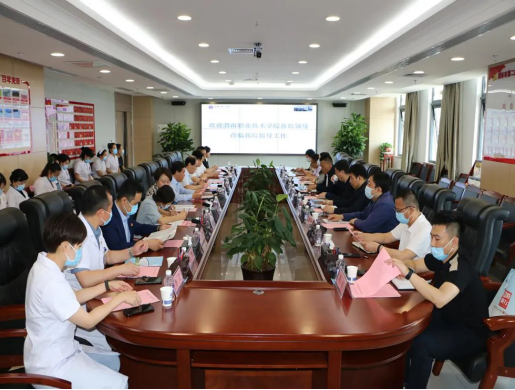 公司党委副书记王录军介绍了前来参观的主要人员和渭职院近几年医药卫生类的人才培养及专业建设情况。希望接下来在团队队伍,教研项目,实训基地建设,员工实习、就业、社会服务等方面与市二院进一步加强交流合作,集医院和学校所长,实现培育、输送优秀人才,拓宽实训场地,开展岗前培训以及带教工作,服务健康事业的一体化模式。
